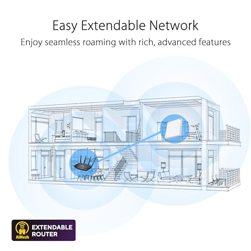 Unkompliziertes, erweiterbares AiMesh-Netzwerk: Unterstützt durch die ASUS AiMesh-Technologie bietet er ein einheitliches und nahtloses WLAN-Netzwerk für den gesamten Raum.