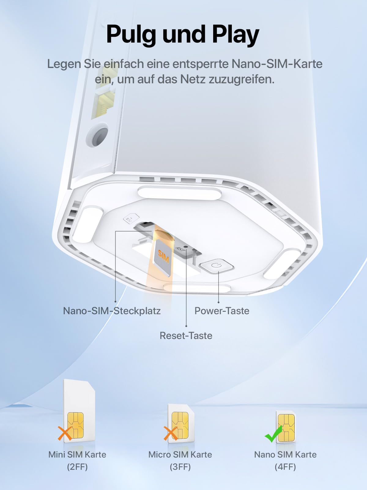 - 【Plug und Play】Legen einfach eine Nano-Sim-Karte ein (nicht im Lieferumfang enthalten), keine Konfigurationen erforderlich, kompatibel mit Telekom, Vodafone, O2, T-Mobile, E-Plus, 1&1 usw. Aktivieren Sie das Daten-Roaming, um den Internetzugang zu erhalten, wenn Sie im Ausland unterwegs sind. Unterstützt VoLTE/eSIM nicht