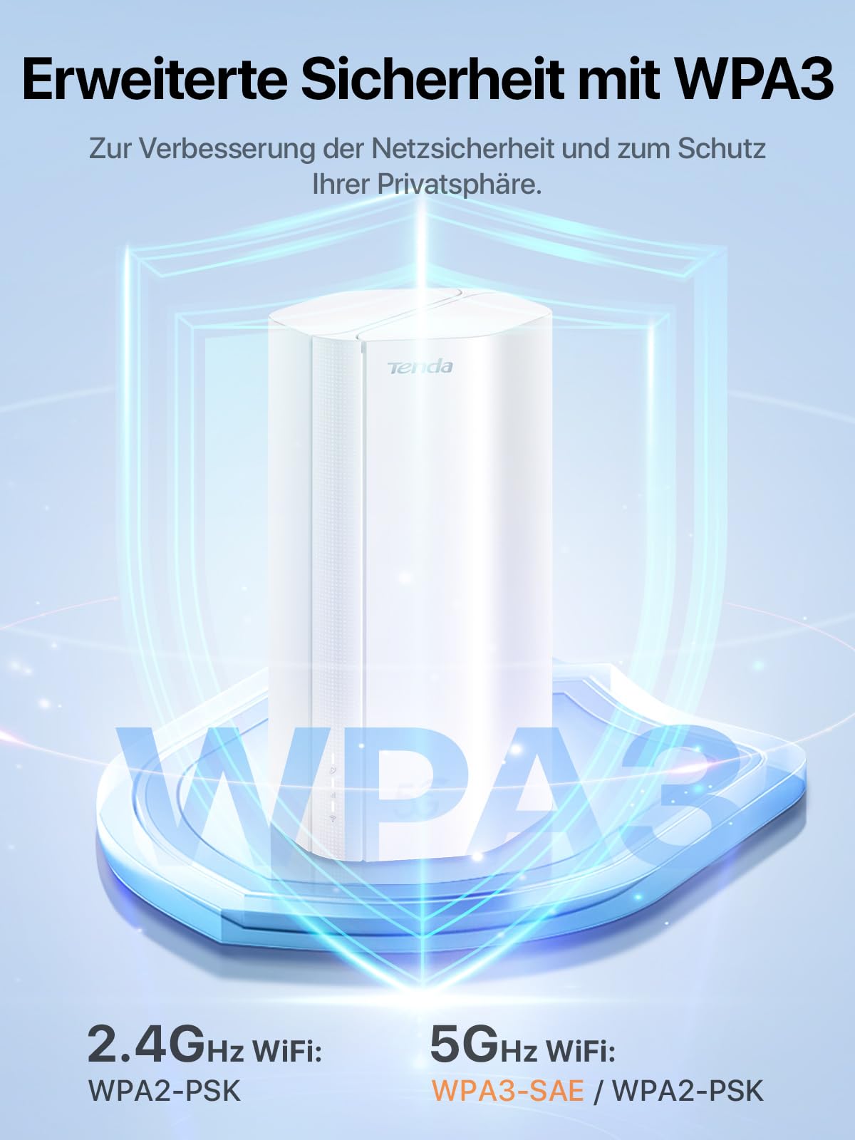 - 【Mesh Wi-Fi+】Erstellen Sie ein zuverlässiges Mesh-Netzwerk, das für starke Wi-Fi-Signale in Ihrem gesamten Haus sorgt. Funktioniert nur mit Tenda-Geräten, die Mesh-Funktionalität unterstützen