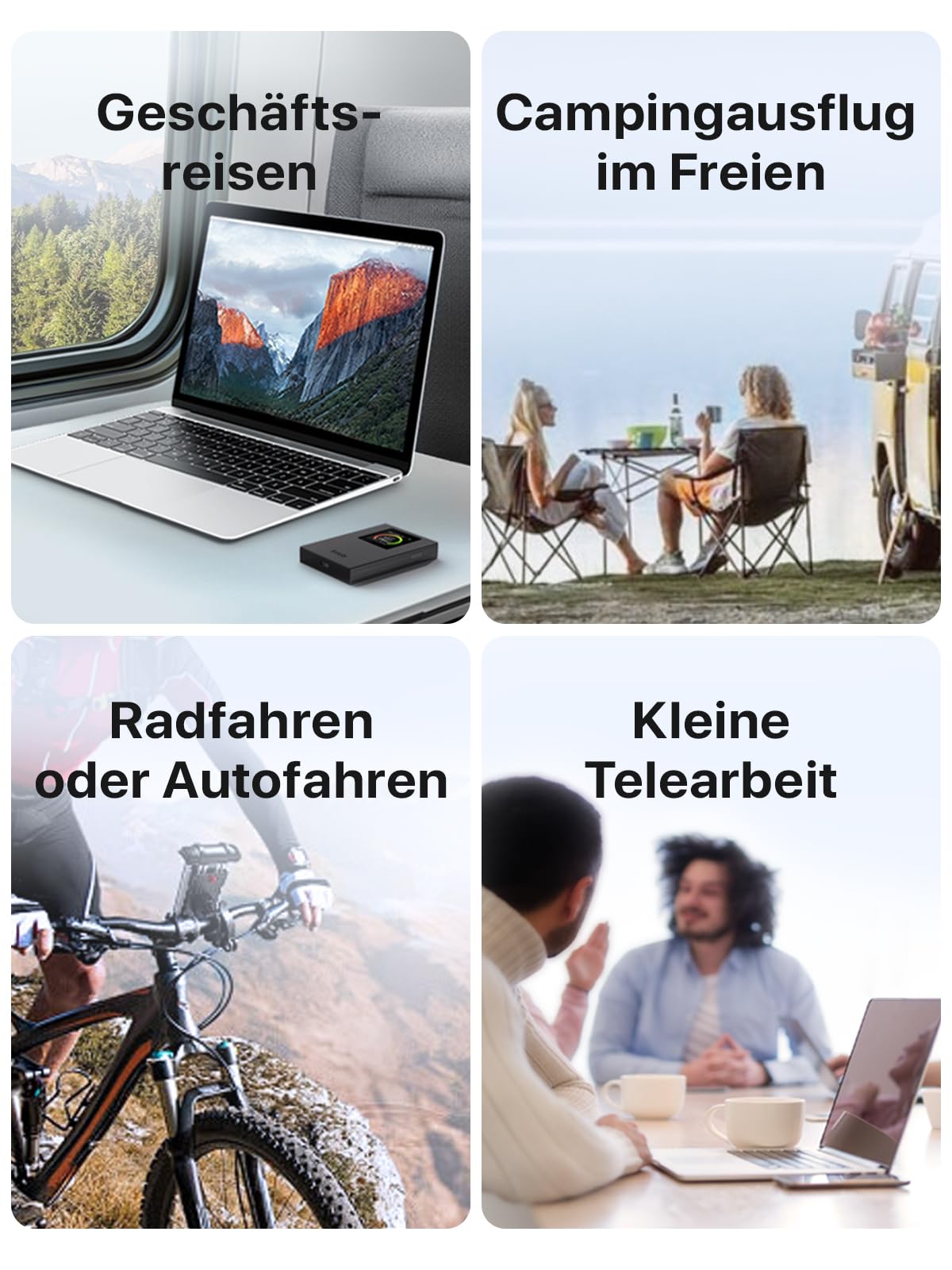 - Plug und Play – Legen Sie einfach eine entsperrte 4G-Nano-SIM-Karte ein, um den 4G/3G-WLAN-Hotspot sofort mit drahtlosen Geräten wie Tablets, Smartphones, Laptops zu teilen.