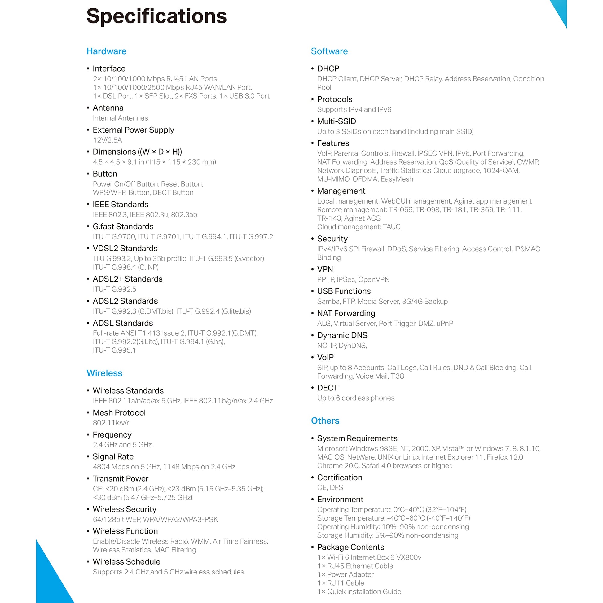 TP-Link VX800v – VDSL Modem Router Wi-Fi 6, bis 3.500 Mbit/s, 5G.Fast, Gigabit-WAN