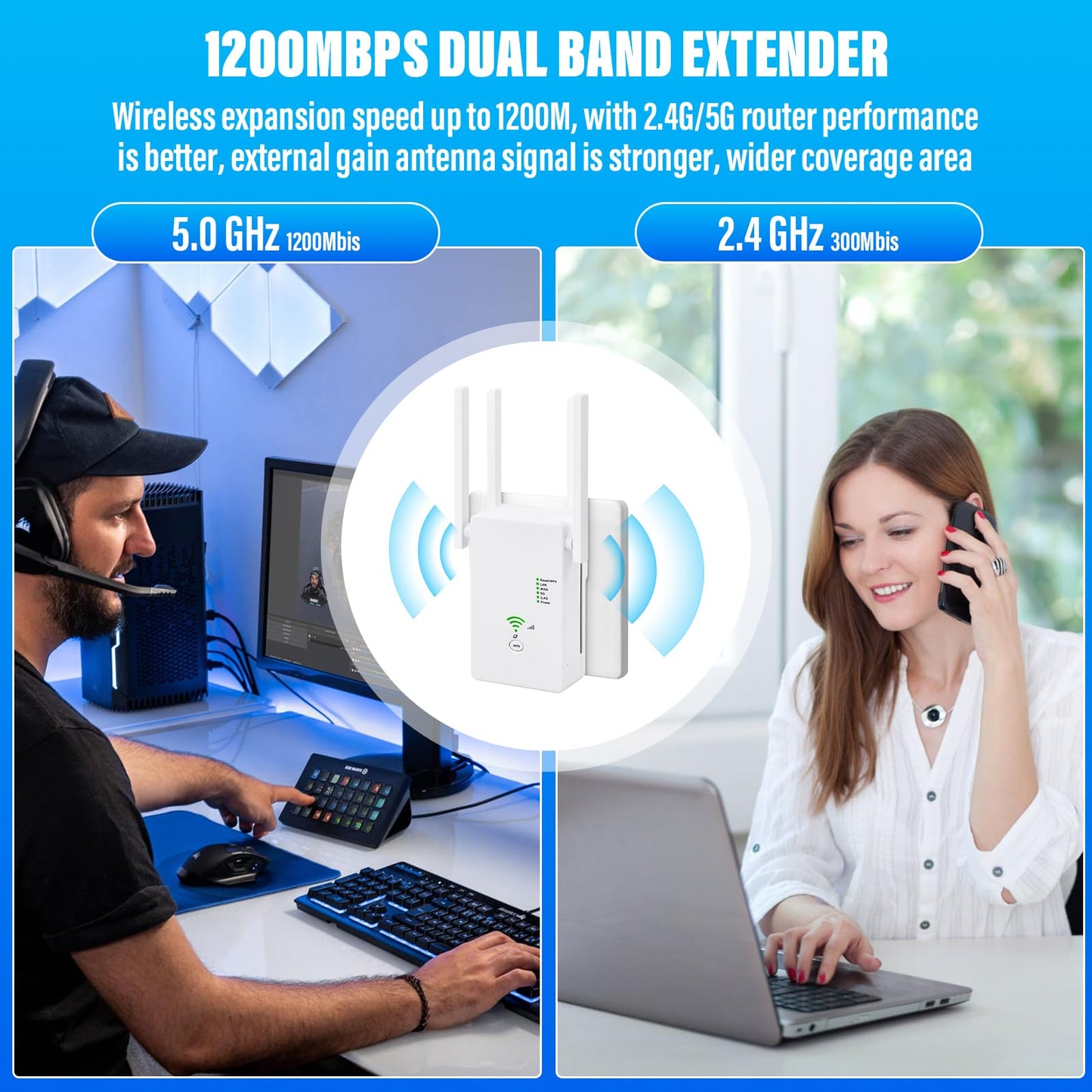 - 【Intelligente Signalstärkeanzeige】 Die integrierte LED-Signalanzeige hilft Ihnen, die optimale Platzierung für maximale Abdeckung zu finden. Dank vier externer Hochleistungsantennen ist zudem ein starkes und stabiles WLAN-Signal für alle Ihre Geräte garantiert.